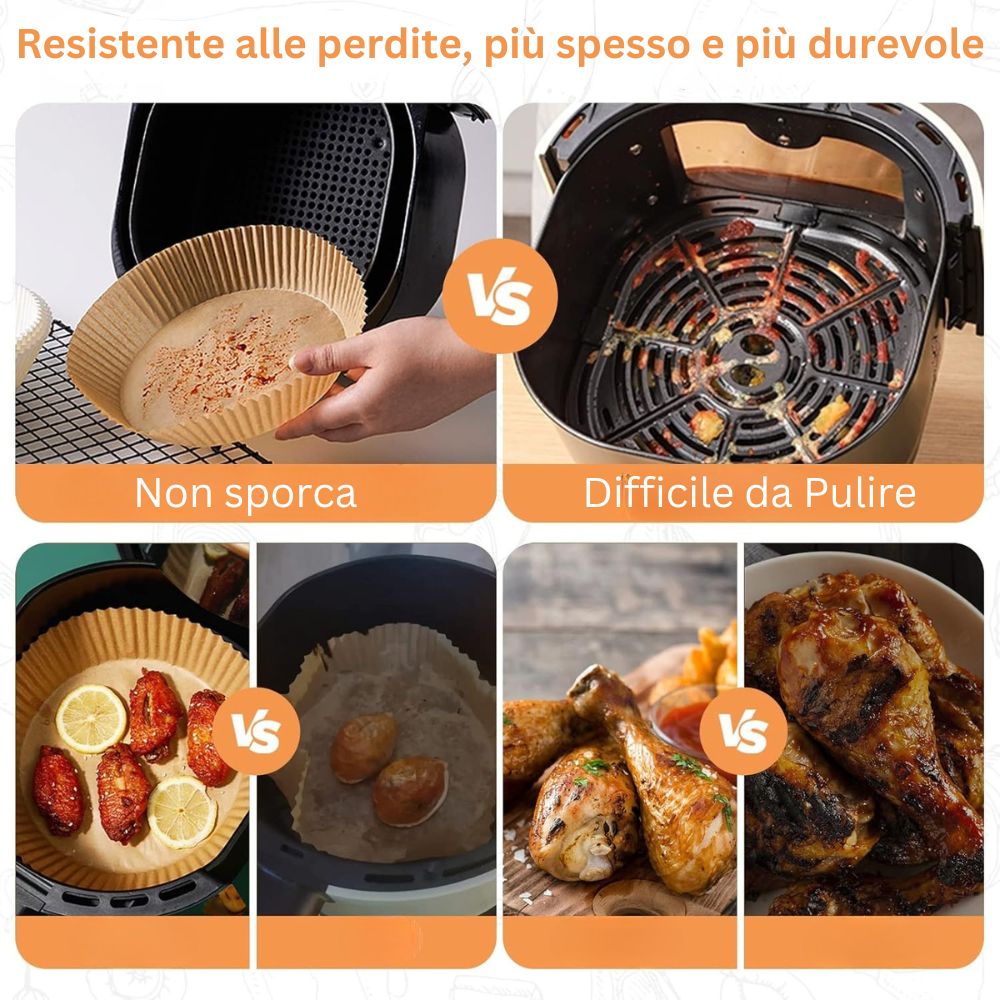 Facile da usare: Posiziona la carta nel cestello e lascia che il cibo cuocia senza attaccarsi o rilasciare olio.