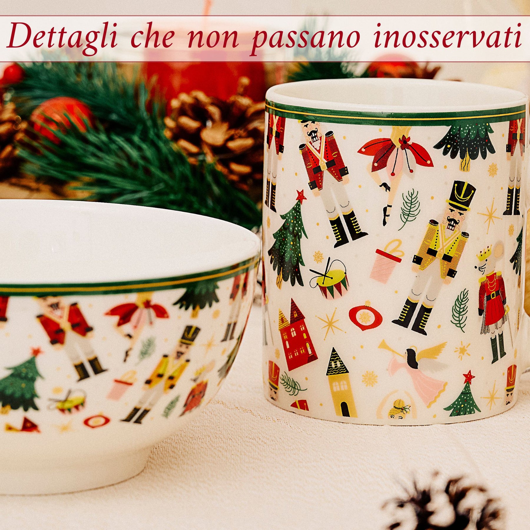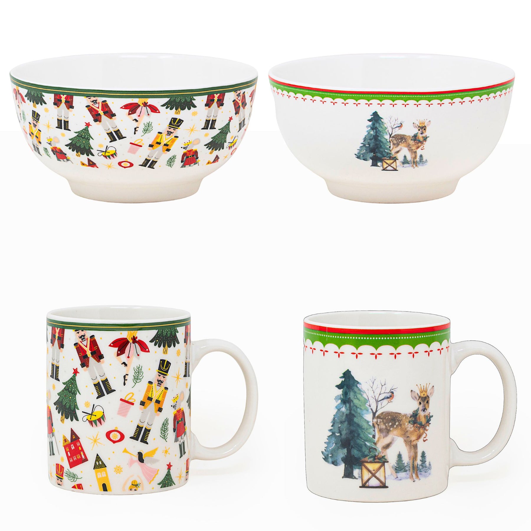 Set 2 Mug + 2 Ciotole 310 ml – Renne e Schiaccianoci | Colazioni in Festa