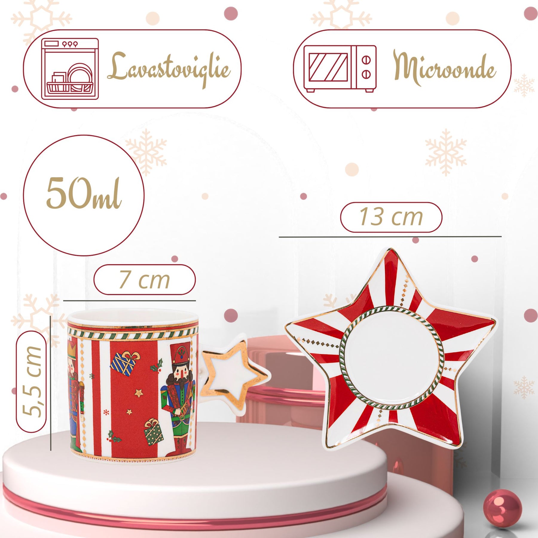 Set 6 Tazzine Caffè 50 ml con Piattino Stella – Schiaccianoci | Stile ed Eleganza