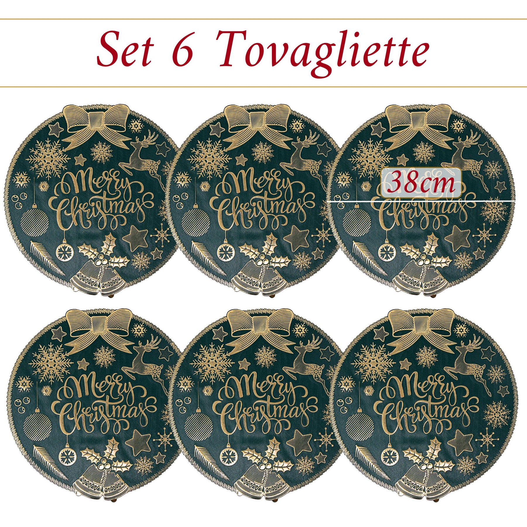 Set 6 Sottopiatti Natalizi – Merry Christmas Verde & Oro | Eleganza Classica