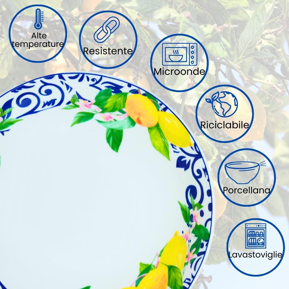Servizio Piatti in Porcellana 6 Persone - Set Piatti 18 Pezzi - Lemon